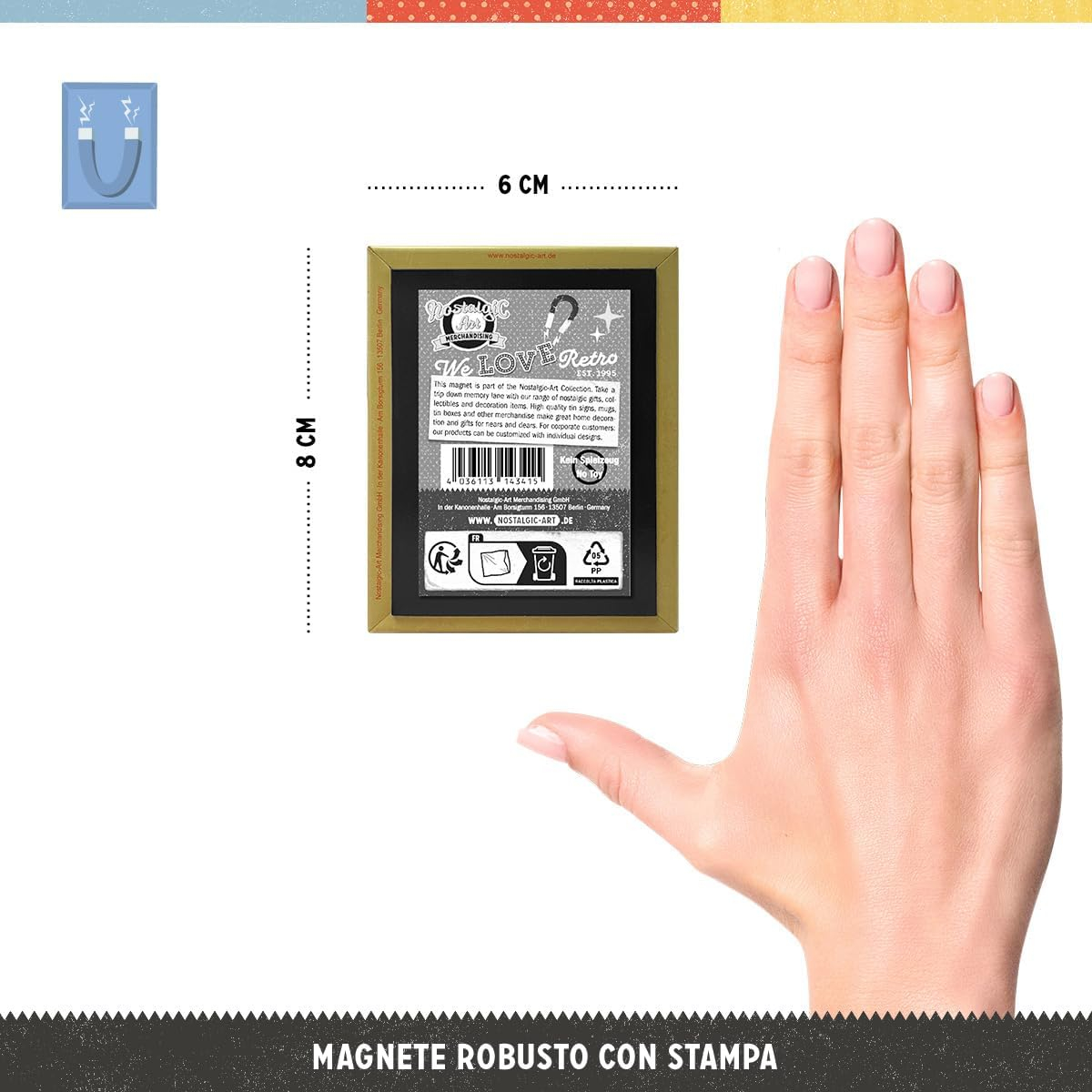 Magnet puternic, cu suprafata imprimata, din otel rezistent, personalizeaza spatiul de lucru, transforma orice suprafata metalica intr-o declaratie si arata grozav facand-o, ambalati individual in folie de plastic de protectie; dimensiune: 6/8cm.