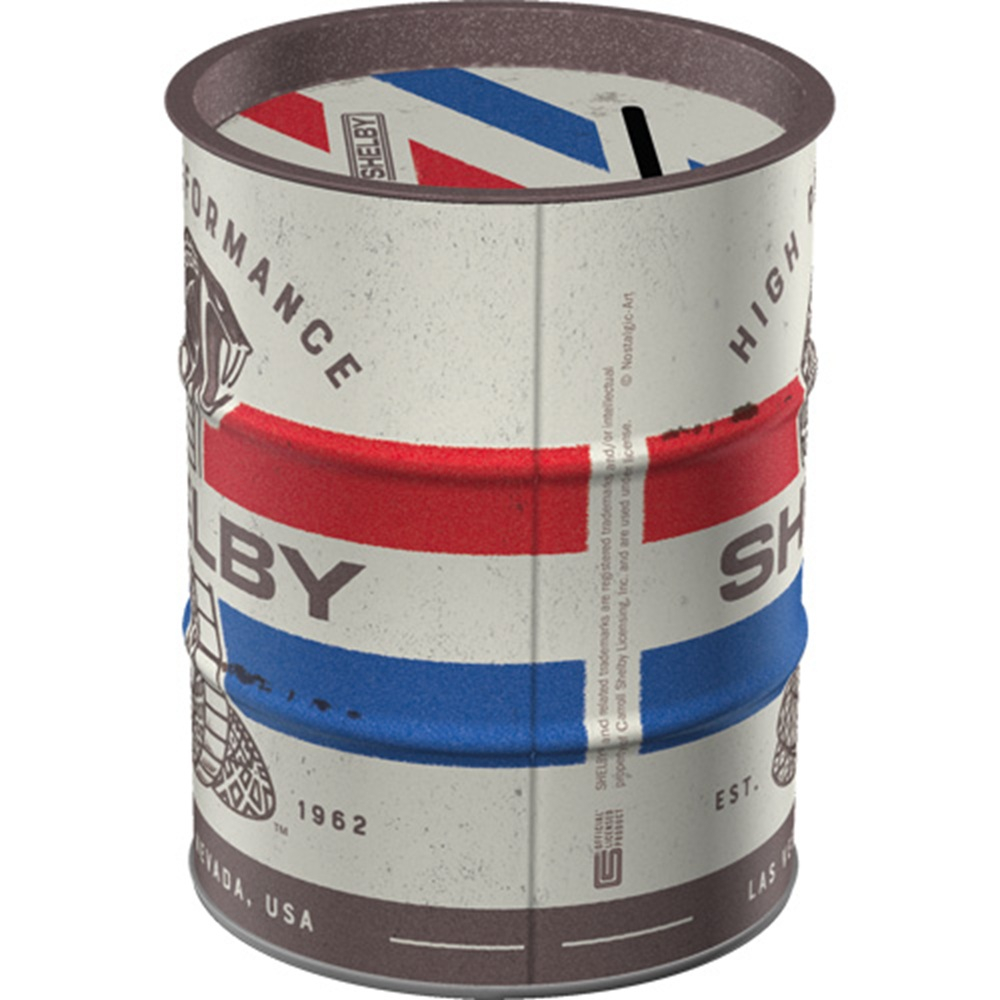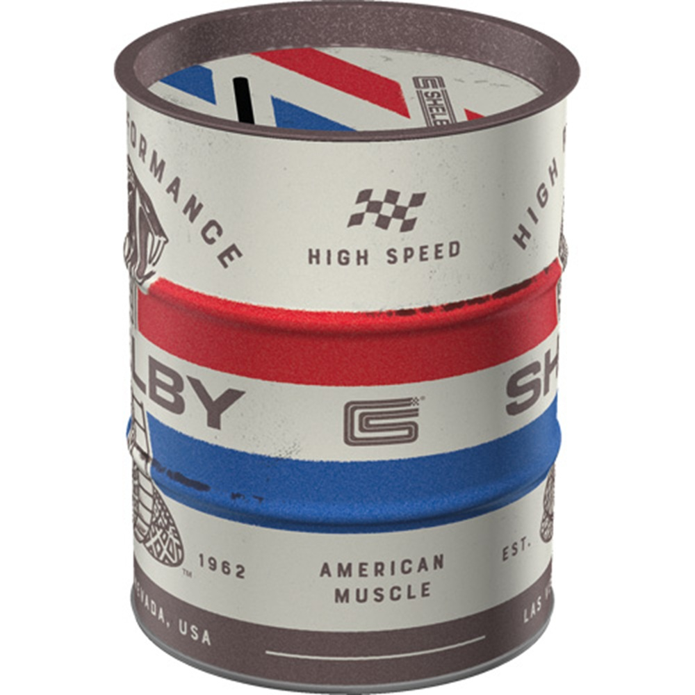 Pusculita butoi Nostalgic Art cu designul Shelby Cobra Snake este o pusculita metalica licentiata oficial, cu un design retro de butoi de ulei.